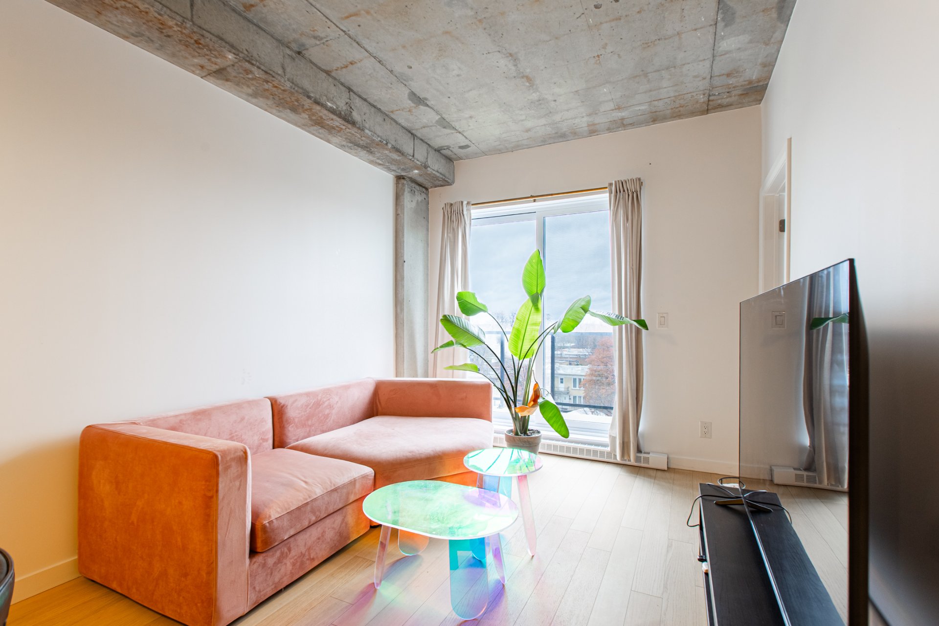 Superbe condo baigné de lumière naturelle offrant une chambre conviviale avec walk-in aménagé. Superbe salle de bain avec bain et douche, ainsi qu'un espace de rangement pratique. Profitez d'une terrasse sur le toit avec barbecues Napoléon et espaces verts soignés. Immeuble calme et sécurisé. Emplacement idéal à 1 min du métro Langelier, près des épiceries, parc, aréna Saint-Donat et écoles.