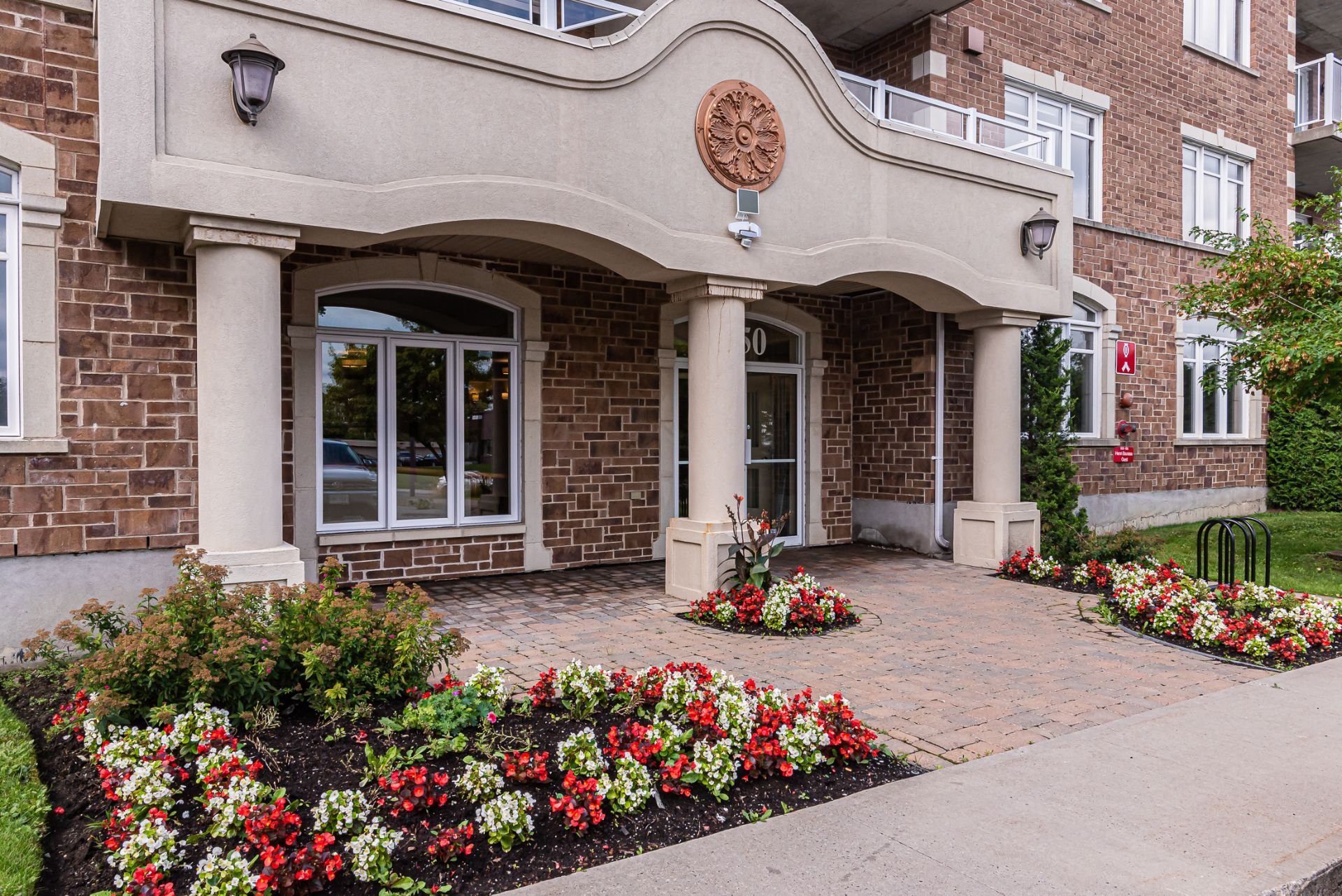 juste devant la porte d'entrée. Le bâtiment dispose de