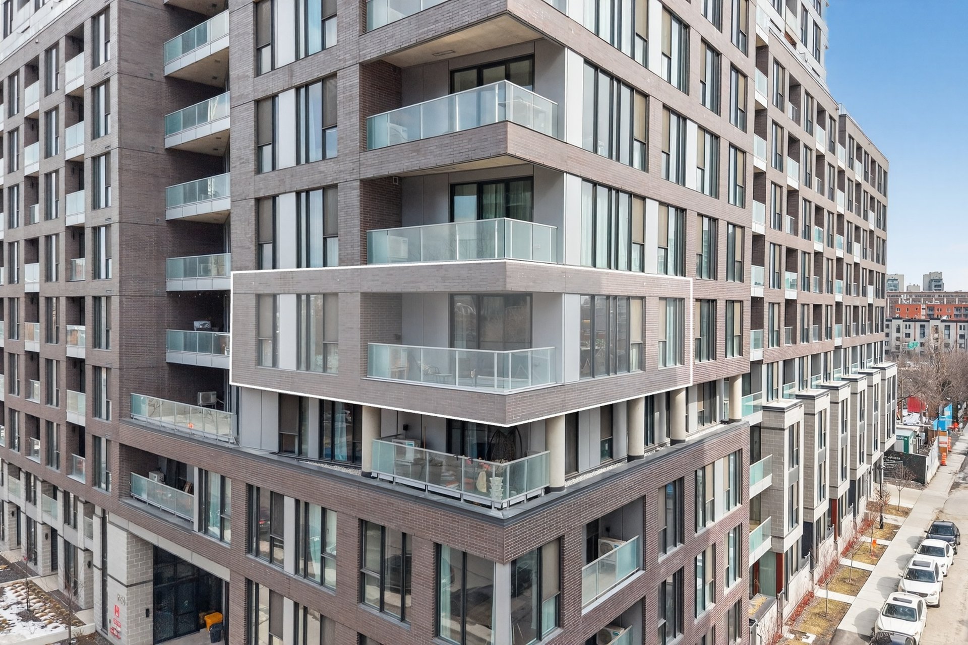 Corner unit at Auguste & Louis Phase 1 offering exceptional light and refined urban living. Floor-to-ceiling windows wrap the open living, dining, and designer kitchen with quartz counters, creating a bright and inviting space ideal for both entertaining and quiet evenings. Two spacious bedrooms, warm engineered flooring throughout, and a large private balcony with city views. Garage parking and indoor storage included. Elegant building with rooftop pool, sky lounge, gym, co-working spaces, and boutique-style amenities. Steps from downtown, the Old Port, metro, and everyday essentials.