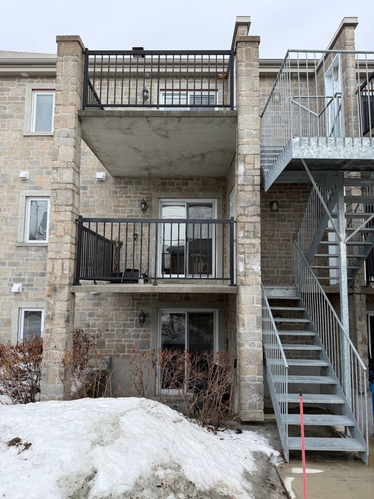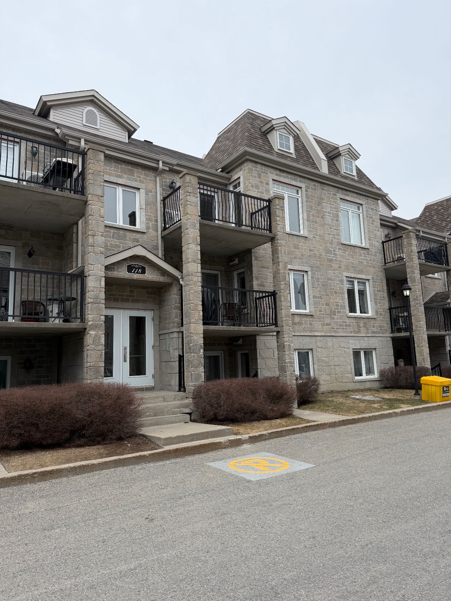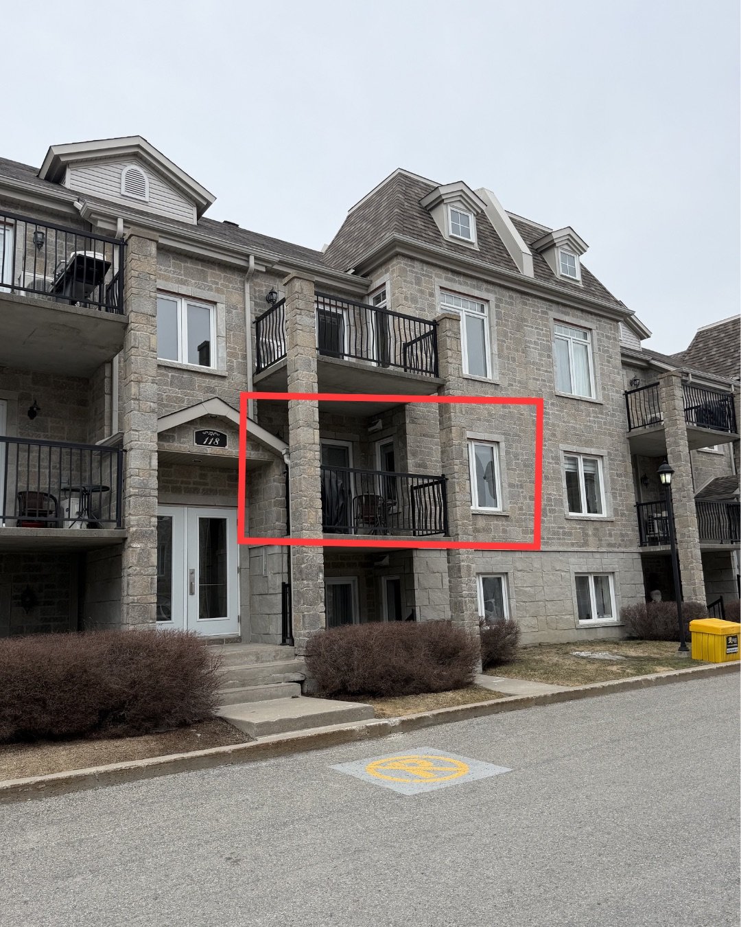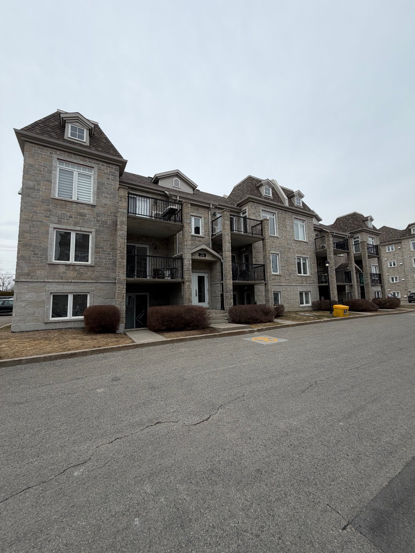 Occupancy starting May 1, 2026. Bright 2-bedroom condo located in a desirable residential sector of Saint-Eustache. This quiet, family-oriented neighborhood provides easy access to local shops and Highway 640. Walking distance to schools, parks including Rivière-Nord Park, and bike paths. The unit, located on the first floor, offers an open-concept layout, two outdoor parking spaces, private storage and two balconies/terraces. Features a large laundry room and plenty of storage space. Conveniently close to all essential services, combining comfort and practicality.