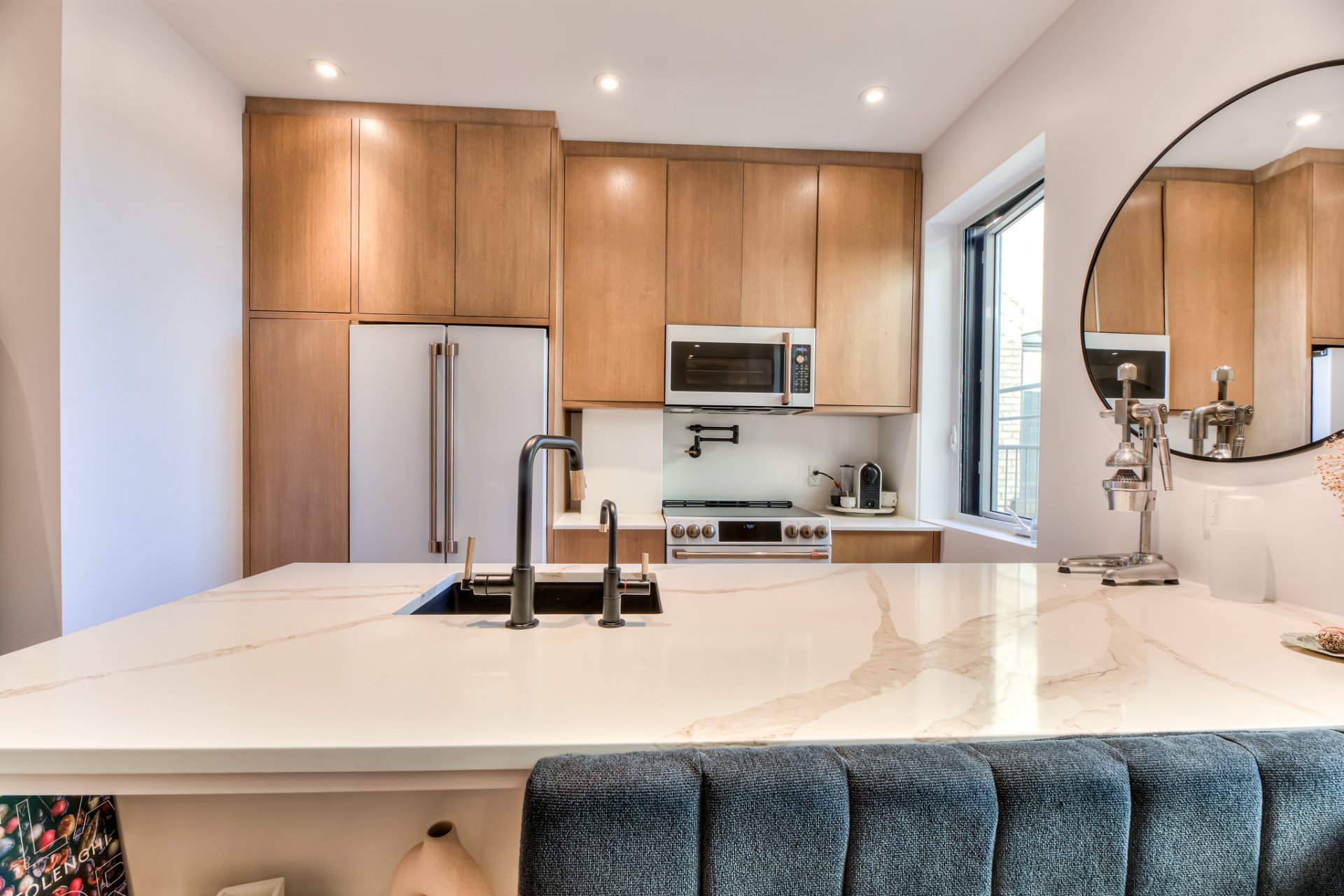 -Open concept, brand new kitchen. Stone countertops, high