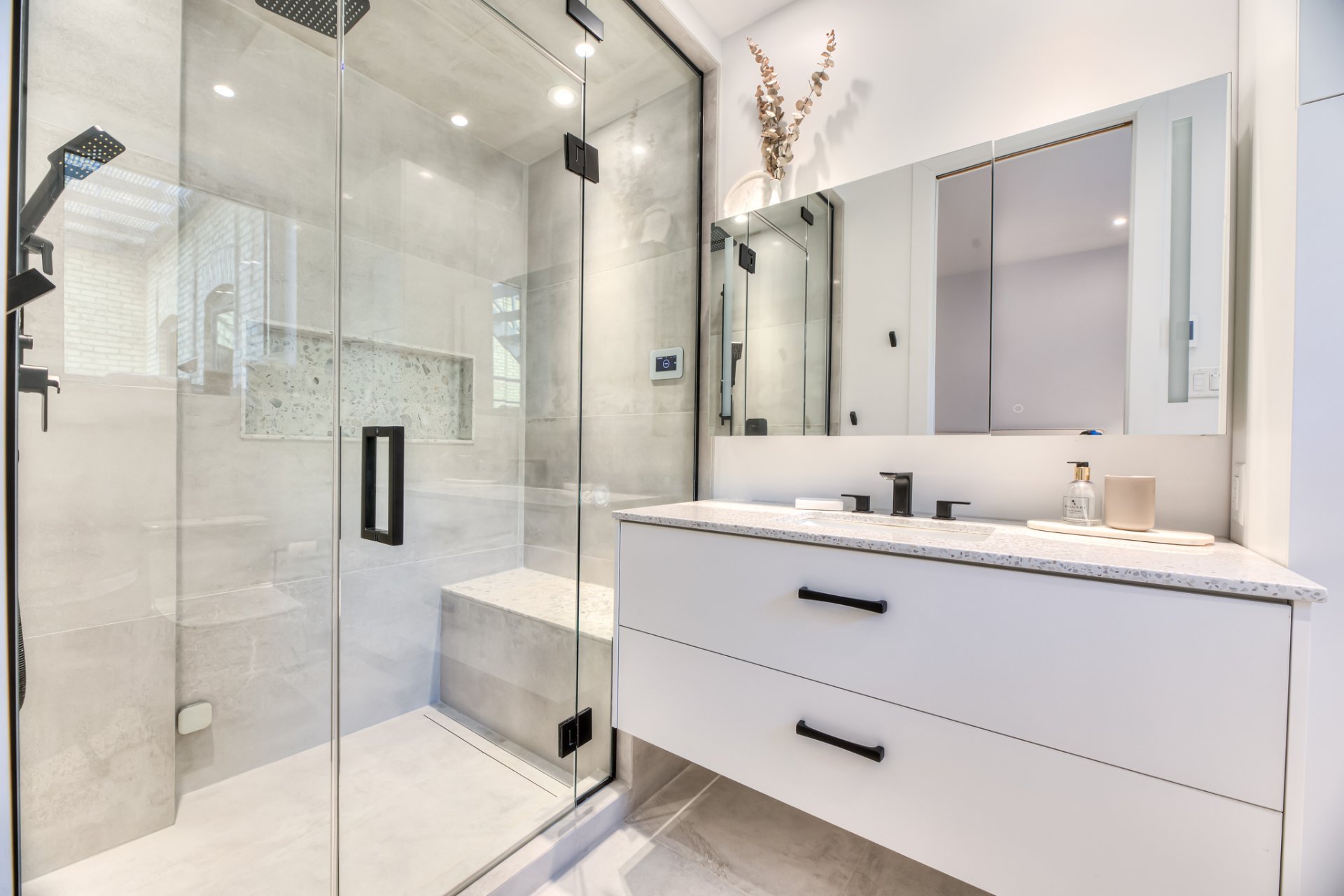 -New bathroom, with heated floors, steam shower. High end