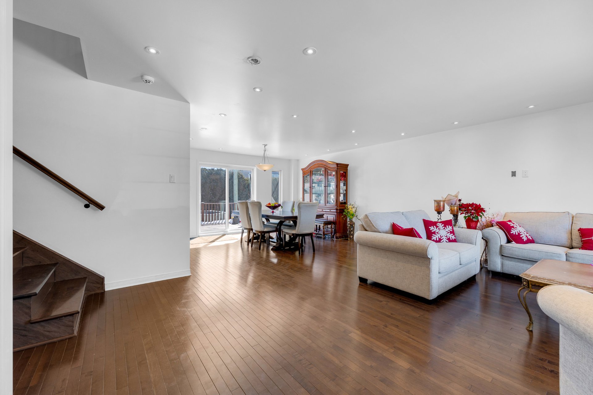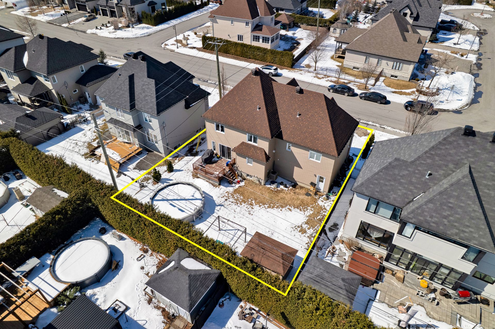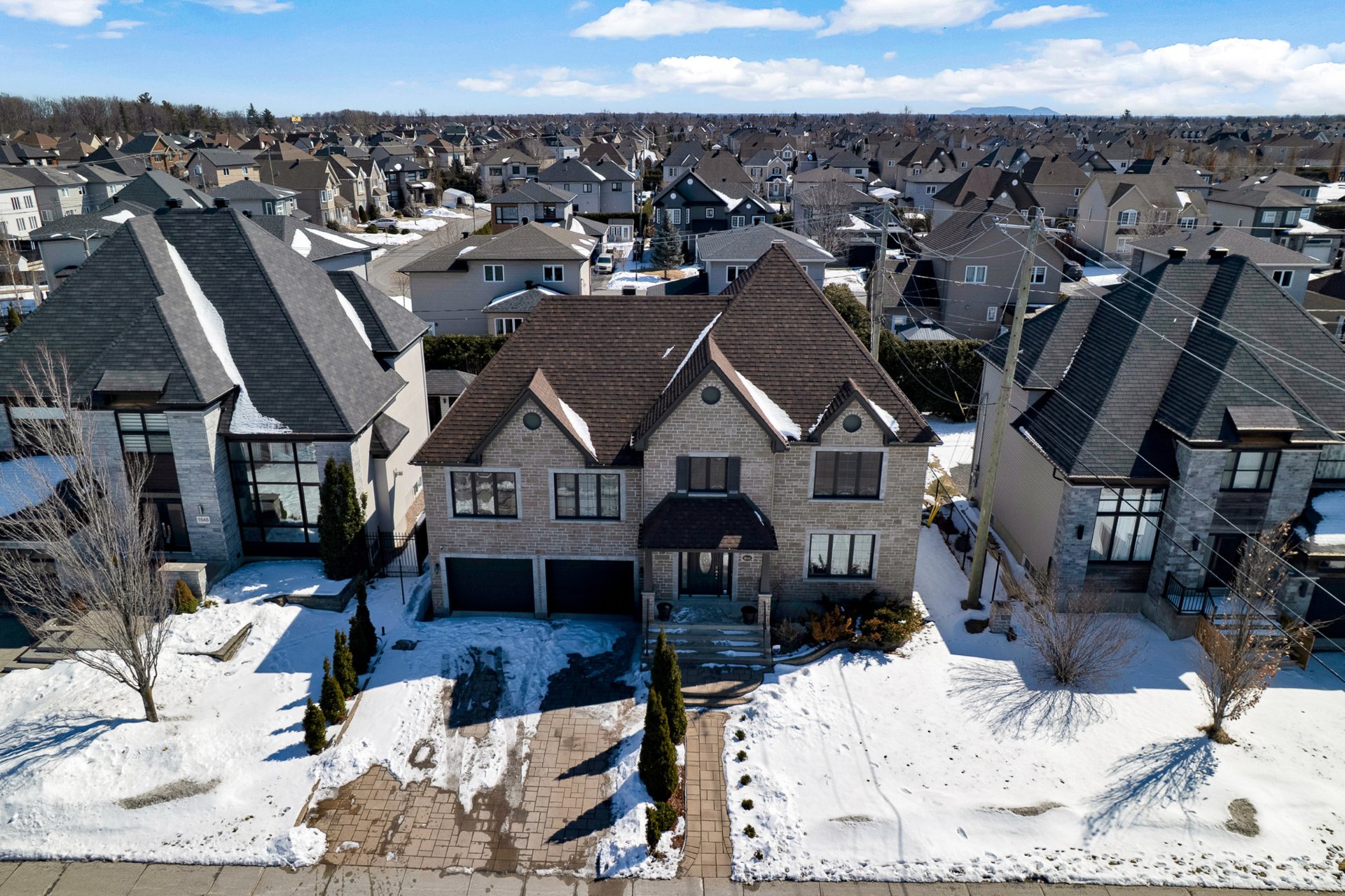 Nestled at 1644 rue de la Mingan, this stunning stone-clad home offers timeless elegance and exceptional curb appeal. The main floor impresses with an open-concept living and dining area, rich hardwood floors, and a kitchen featuring dark cabinetry, stone countertops, and stainless steel appliances. The fully finished basement adds a spacious rec room with stone accent walls and built-in speakers. The large backyard features an above-ground pool, deck, and Pergola. Move-in ready, a rare find!
