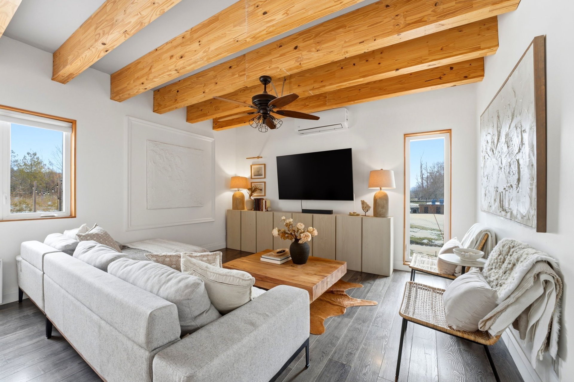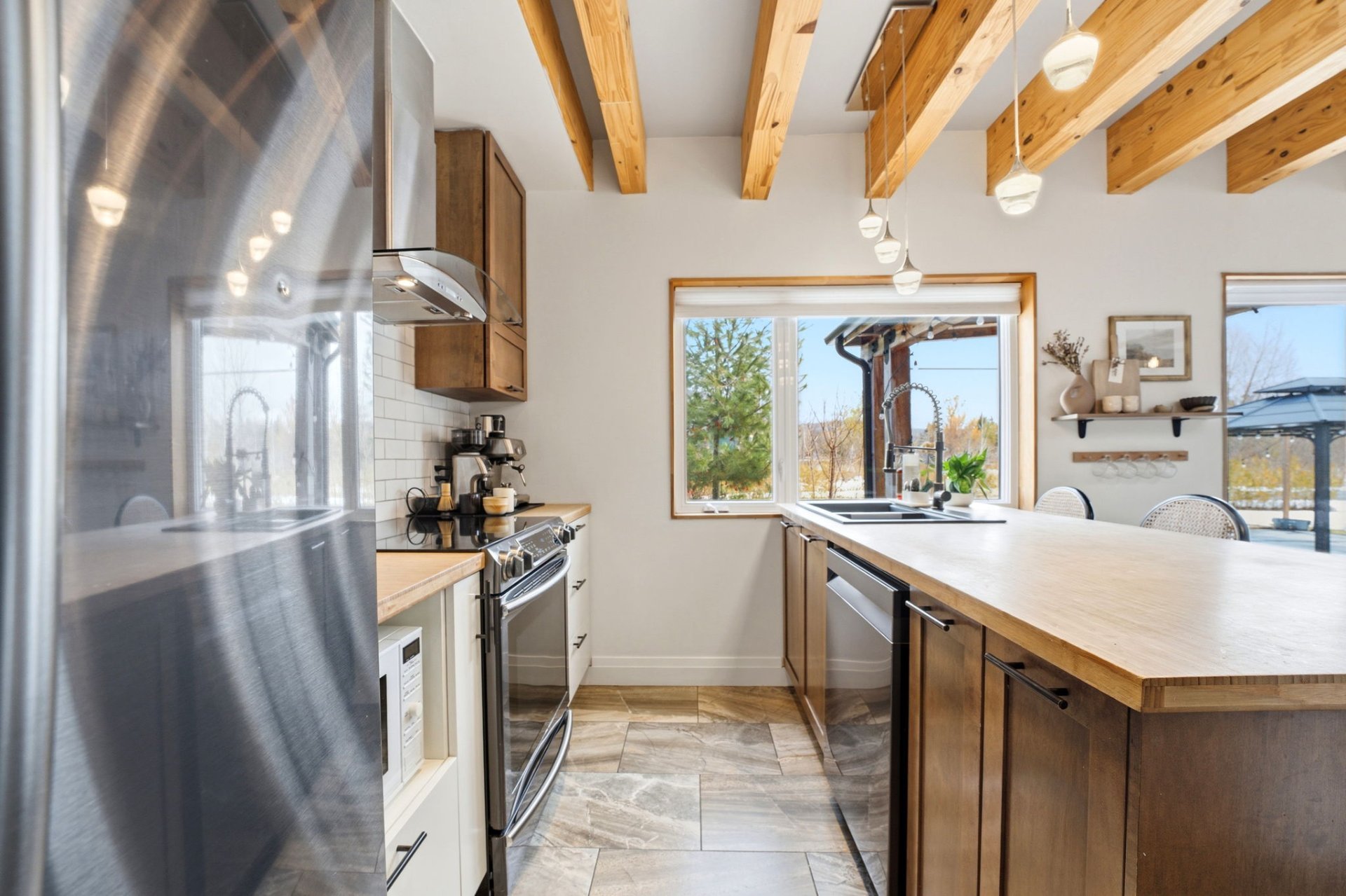 Refrigerator, stove, dishwasher, air exchanger, central vacuum system, hot water tank, wall-mounted A/C unit, light fixtures, water softener, dog run
