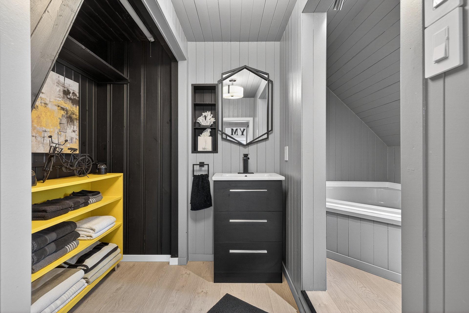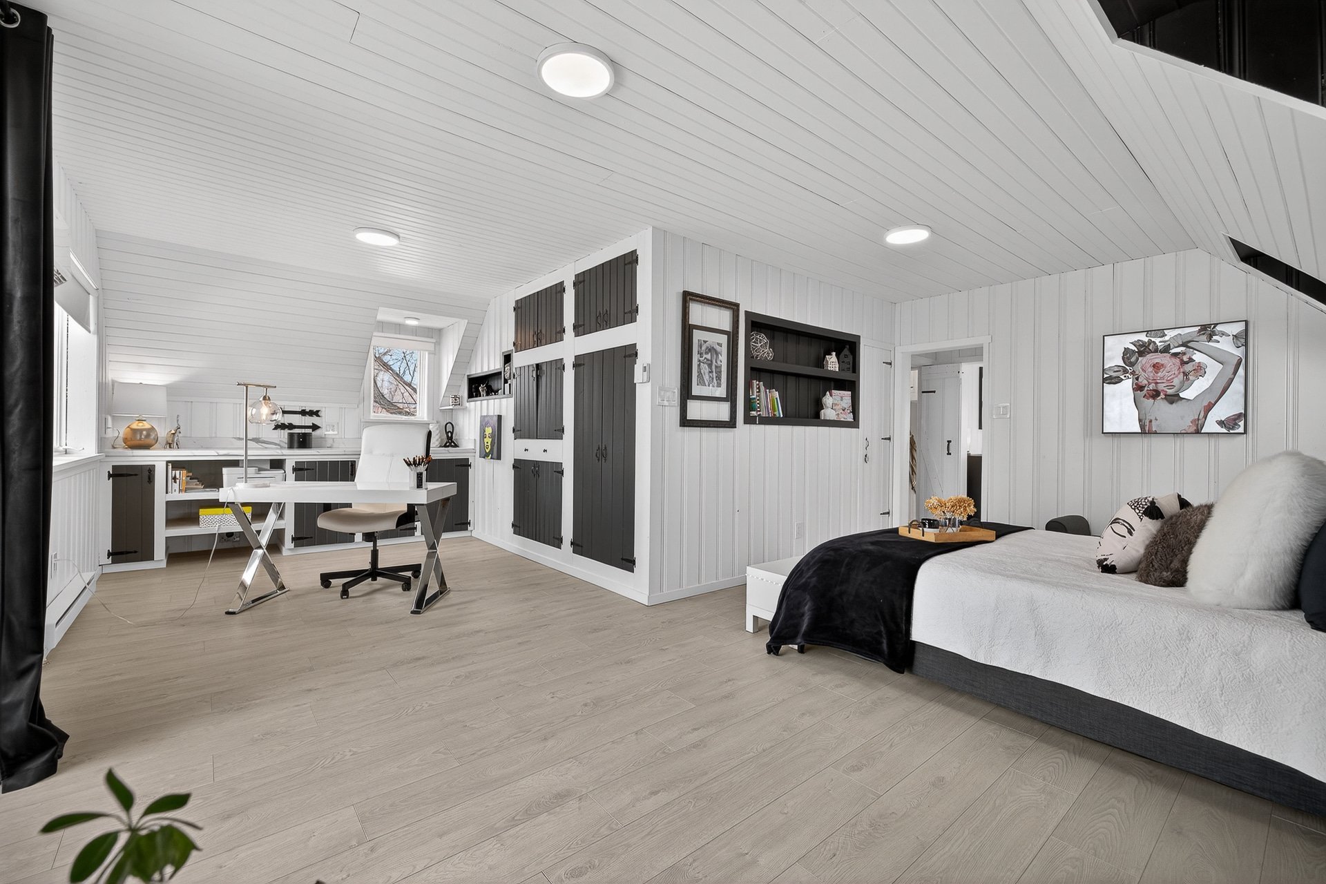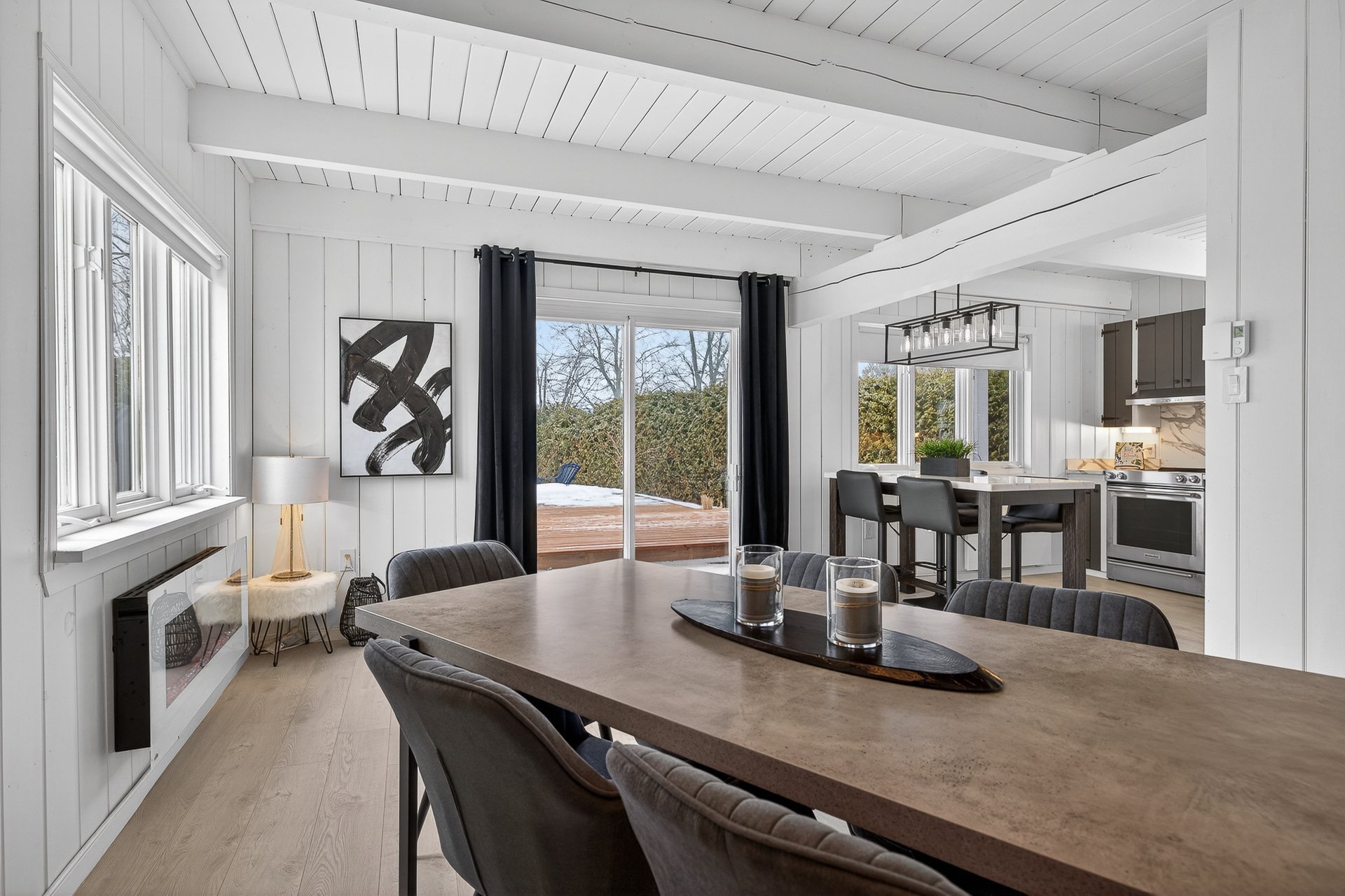 Heaven & Pine; Discover a reimagined, furnished sanctuary where artisanal craftsmanship meets airy, purposeful spaces. This three-story retreat features authentic wood panelling, integrated wood cabinetry with forged iron hardware, and seamless new flooring. Extensive upgrades include a brand-new mechanical suite (UV filtration, softener, pressure tank). Enjoy year-round sun in a private, newly landscaped north-south facing backyard, or take in panoramic river views from new wood decks off the primary suite and loft. With deeded river access and being fully furnished, this home offers an effortless transition into refined comfort.