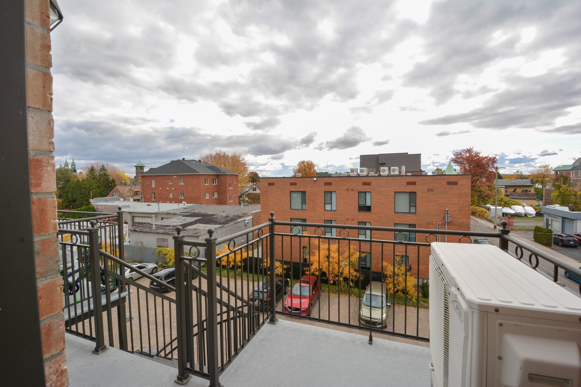 Air exchanger, alarm sys (not connected),wall mounted air conditioner, hood range fan, 1 exterior parking spot