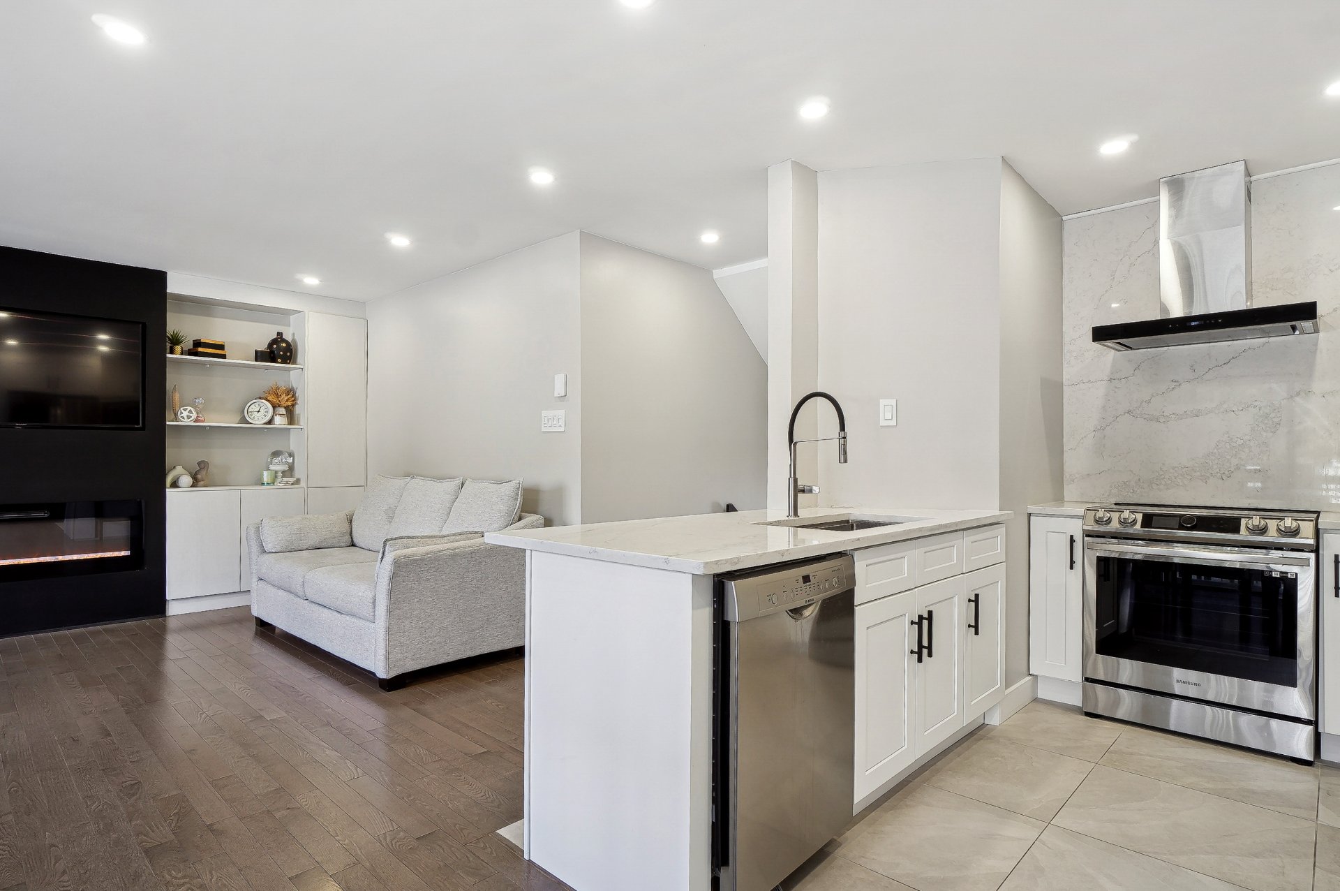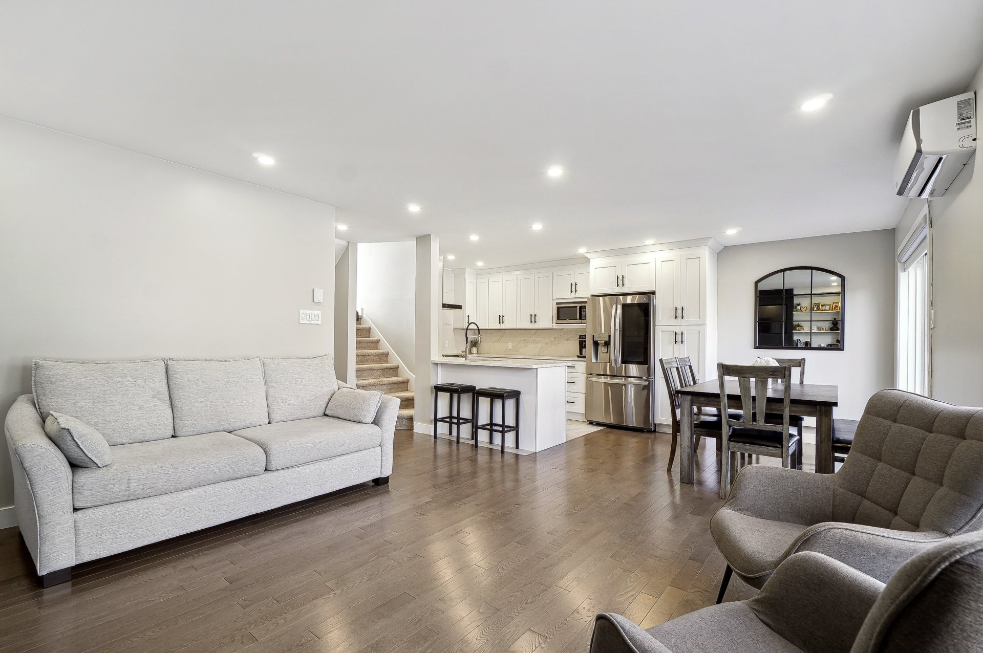 Stunning 3+1 bedroom townhouse for rent at 21 Capri, Dollard des Ormeaux! This modern home boasts an open concept main floor with sleek kitchen (fridge, stove, dishwasher), dining area, and cozy living room. Upstairs: primary suite + 2 beds, full bath. Finished basement offers family room, extra bed, storage. Highlights: private above ground pool, garage, AC units, washer/dryer, built-in TV walls. Backyard patio + shed, near playground. Perfect for families in a quiet neighborhood!