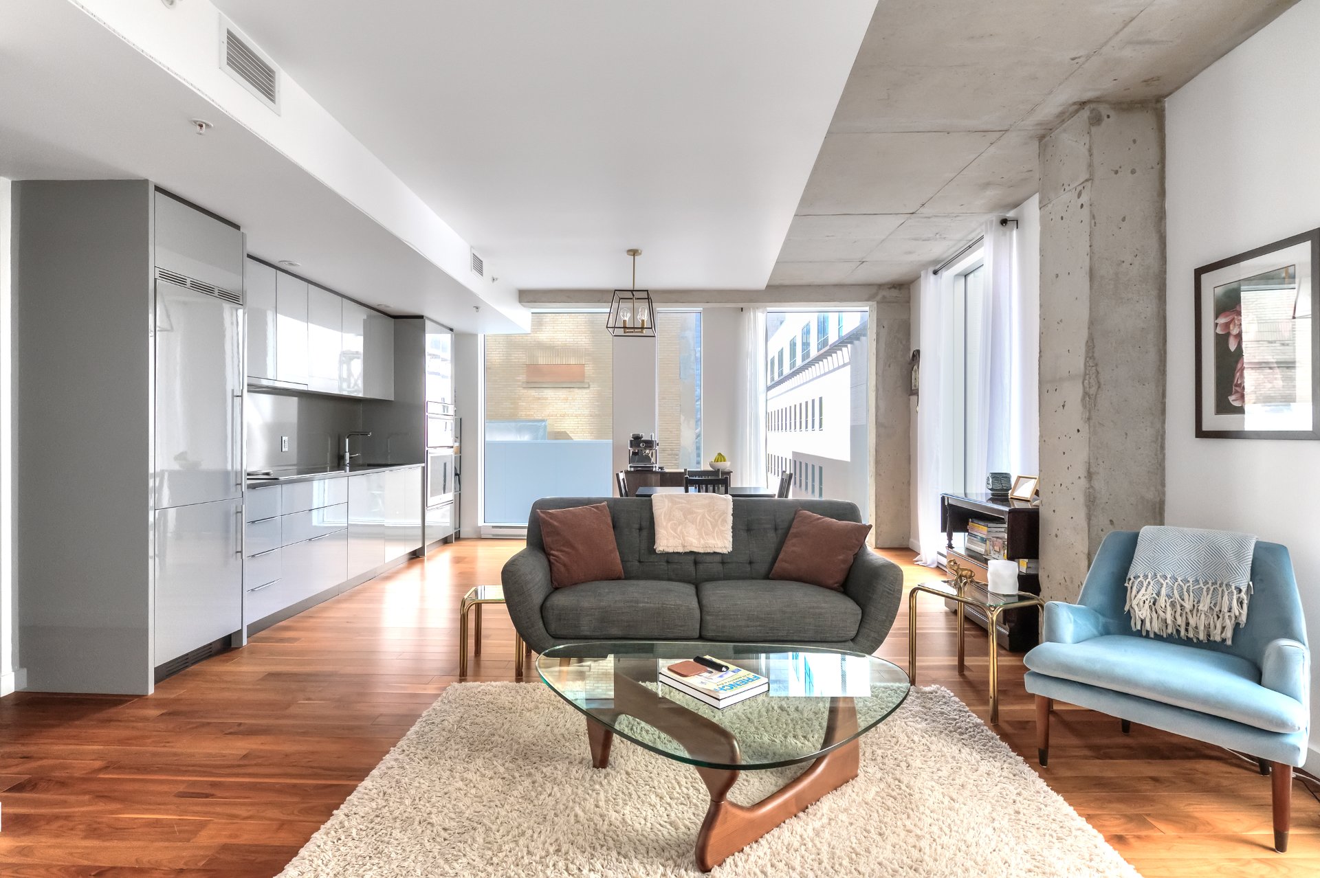 Unique opportunity to own a property at the luxurious Bank project in Old Montreal. Converted in 2014, and previously known as the Royal Bank headquarters, offering historical and beautiful architectural details. This condo offers a spacious, open concept layout with 2 bedrooms, 1 bathrooms and private balcony. Offers high quality materials throughout, Building offers pool/rooftop. Parking options available, contact for more information. A must see!