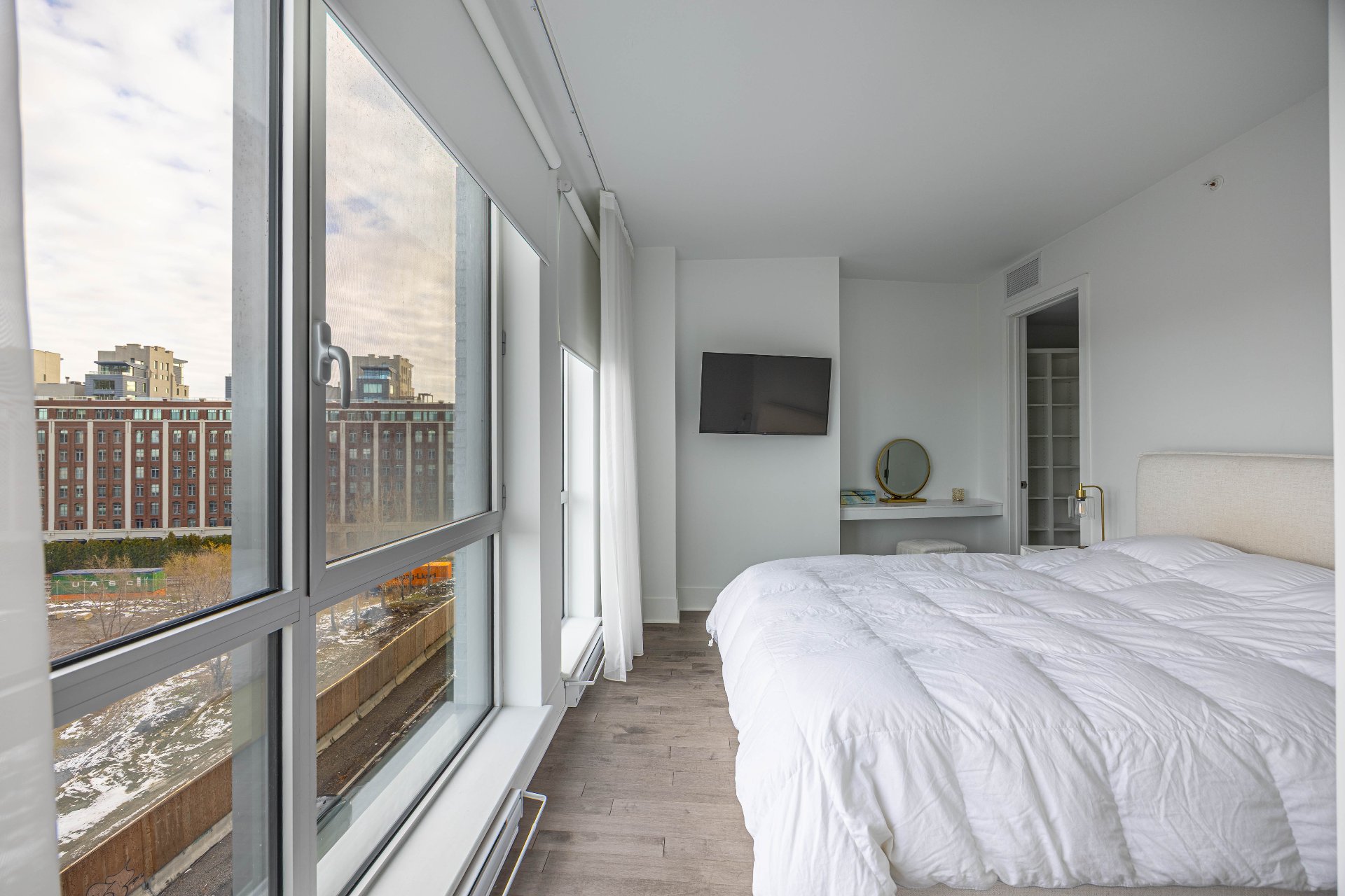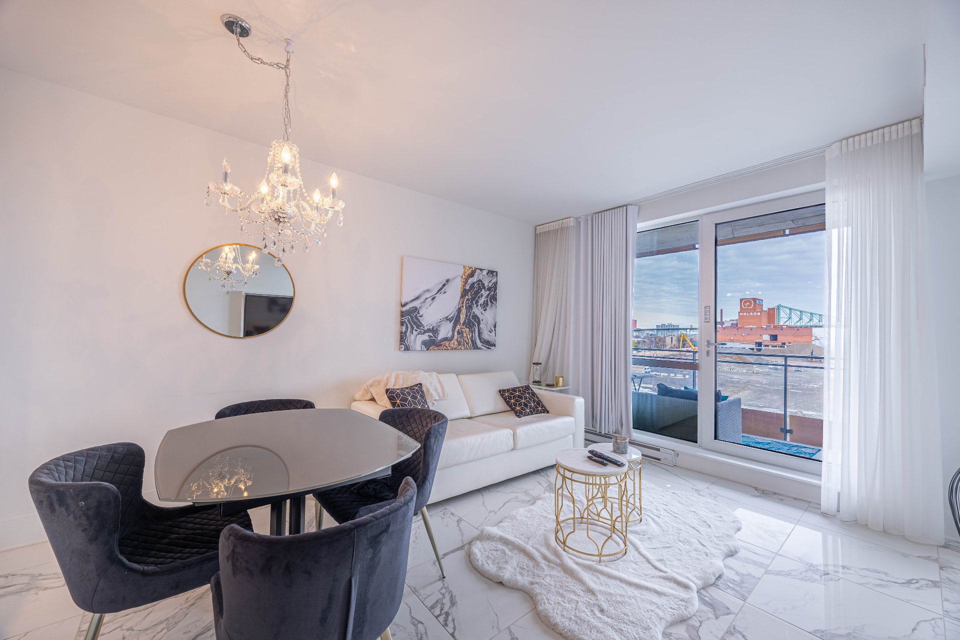 Discover a beautiful condo offering a spectacular view of the river and the Jacques-Cartier Bridge. With a Walk Score of 96 and a Bike Score of 100, you're steps away from cafés, restaurants, parks, public transit, and all essential services. Bright and modern, this fully furnished unit is move-in ready, with all furniture and appliances included. The spacious layout and abundant natural light create a warm and comfortable living environment. Perfect for homeowners or investors seeking a turnkey property in one of Montréal's most vibrant neighborhoods. Electric vehicle charging station available with 1 place interior parking.