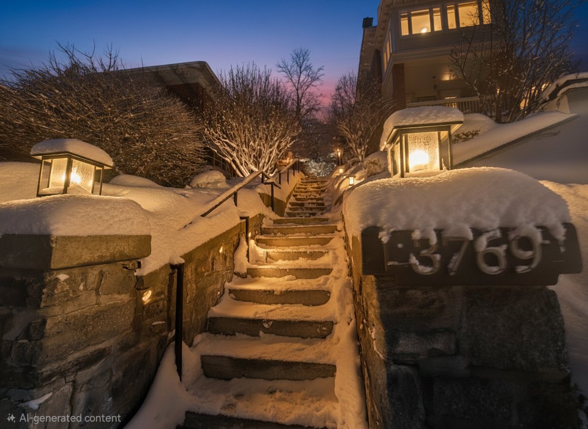 staircase. In the evenings, the beautifully lit stone