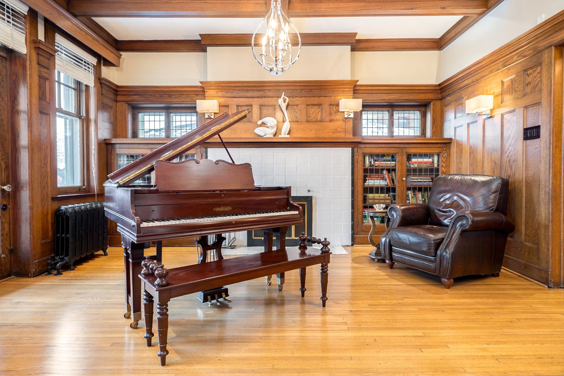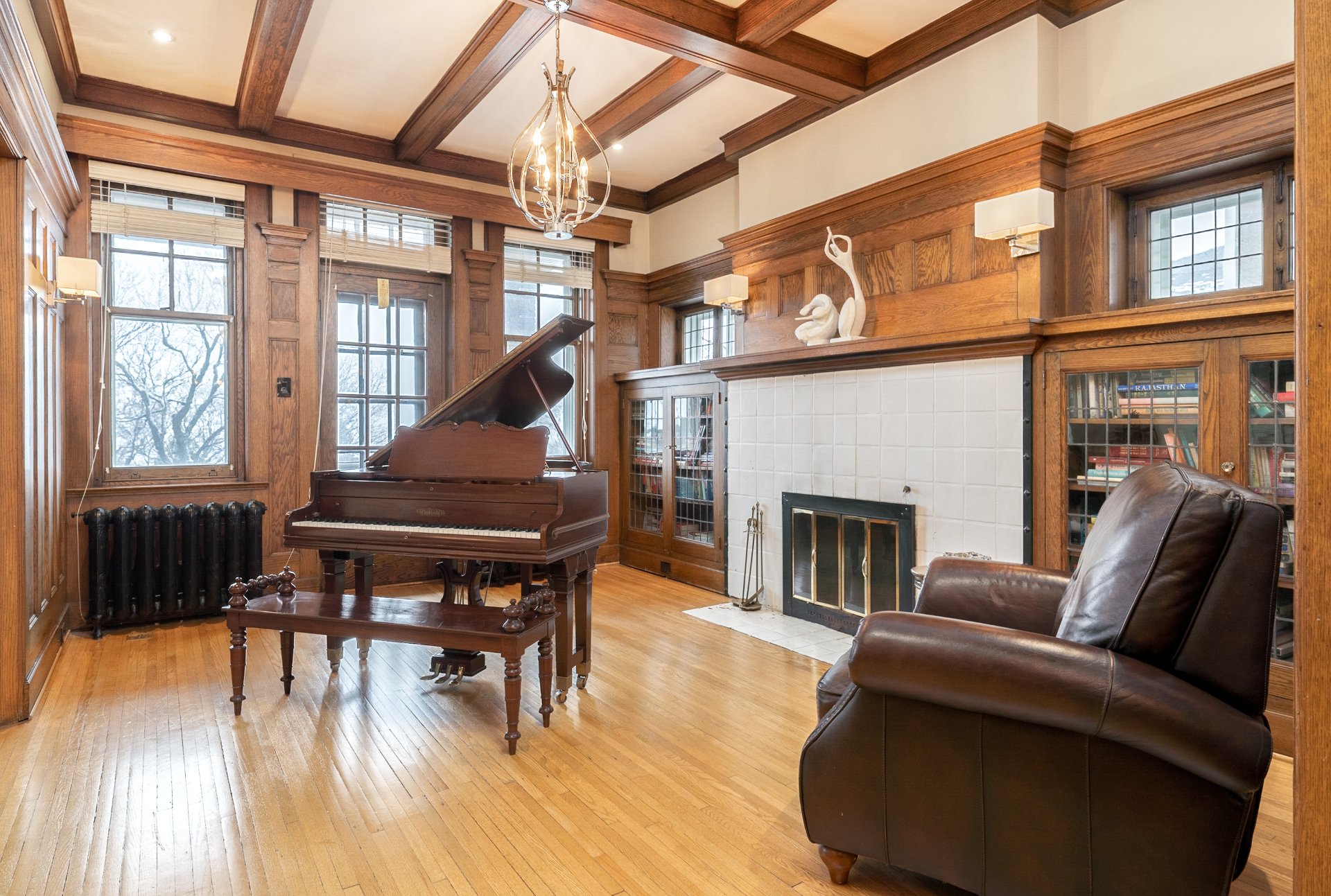 Step inside and be captivated by the dark stained oak walls