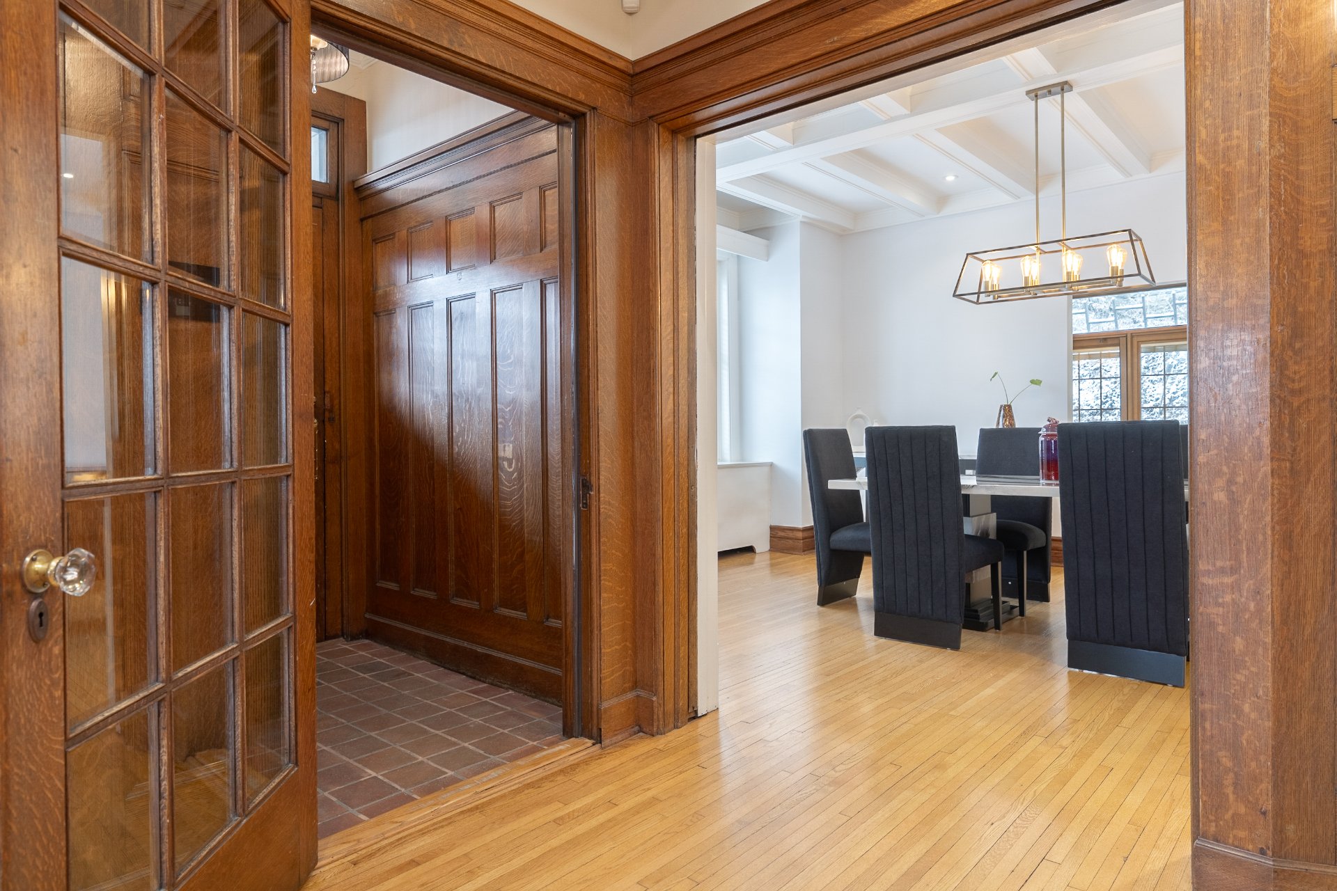 hosting gatherings. Separated from the kitchen and hallway,
