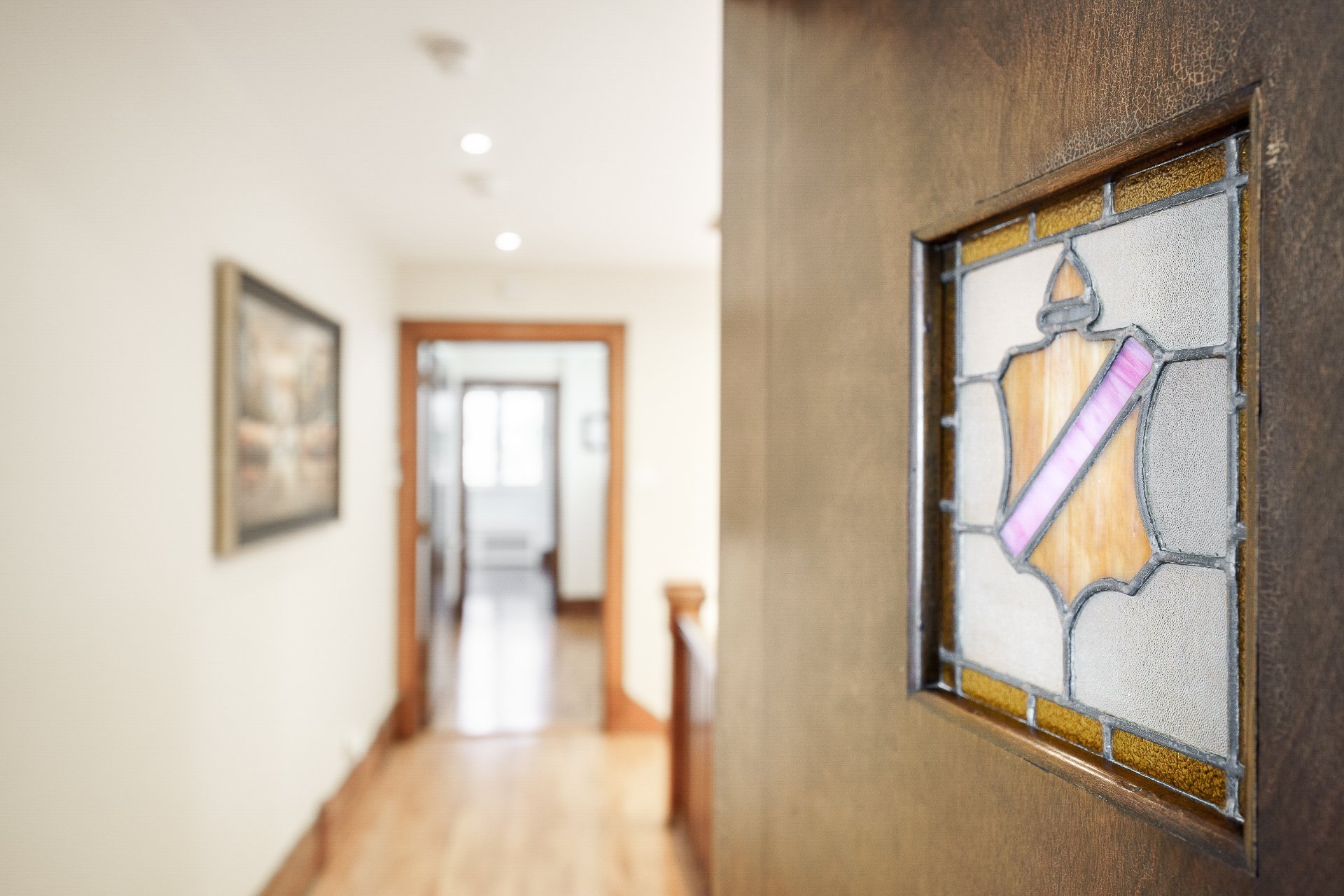 accentuated by a stunning glass-stained skylight at the