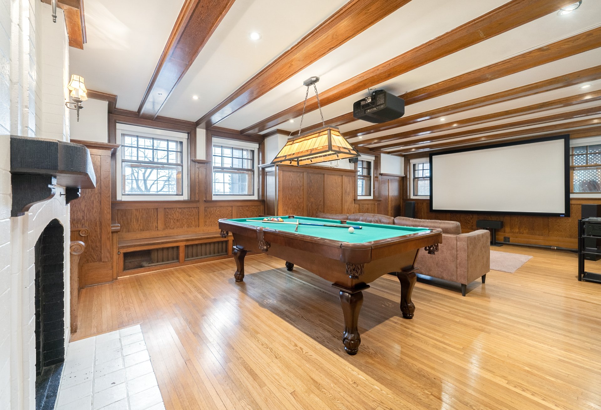 area houses a pool table and a home cinema, with blackout