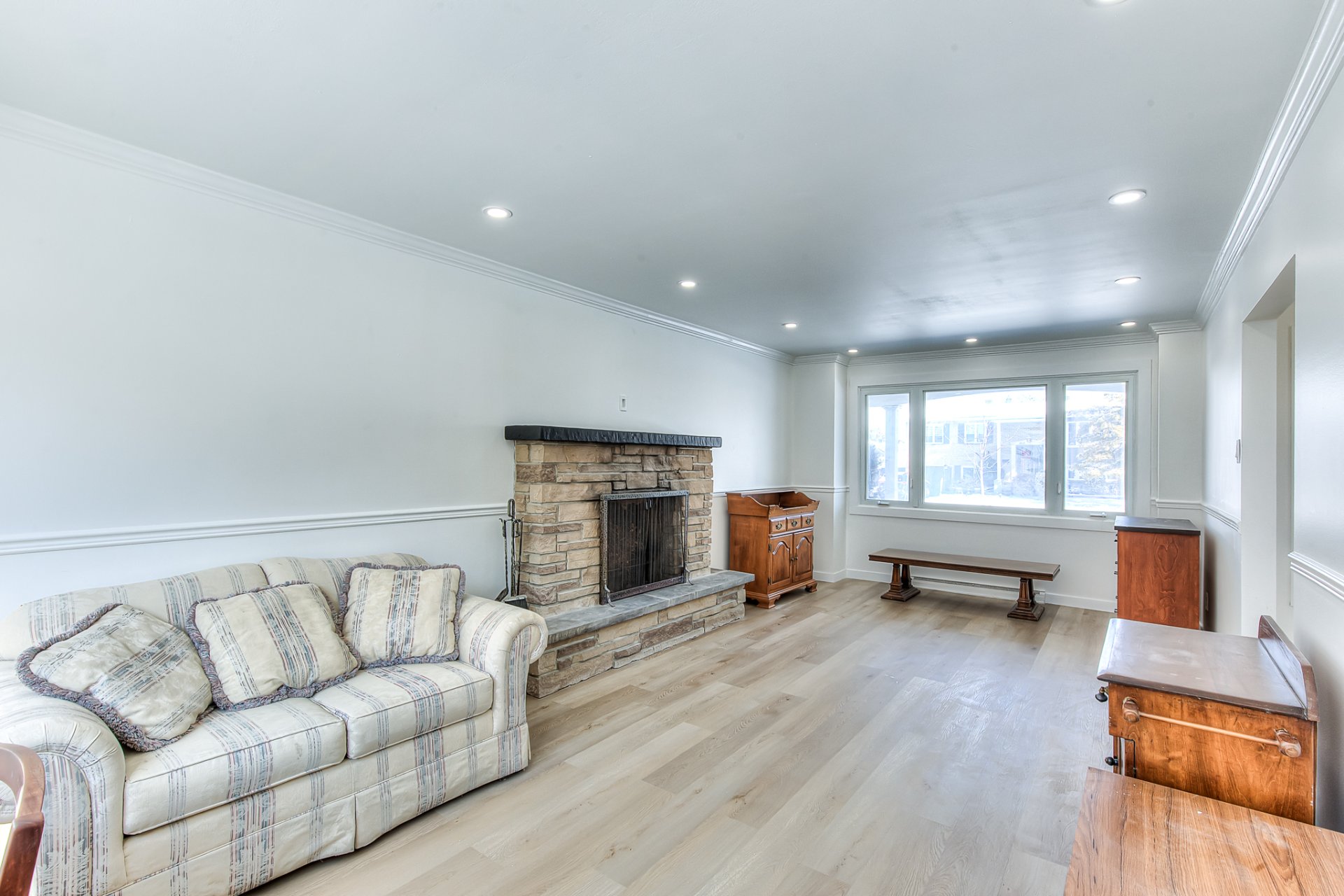 Welcome to 465 Av. Devon, DDO! Charming detached corner cottage offering 5 bedrooms, including 4 on the same floor and 1 in the basement. Main floor features 2 full bathrooms and a renovated powder room. Bright layout with large living room (fireplace not in use, sold as is), dining room, den, and eat-in kitchen with access to backyard. Garage + 4-car driveway. Freshly painted, new light switches, central A/C & heating. Gas hot water tank rented ($20/month). Newer roof shingles, soffits, front door, and 5 windows. Spacious basement with 2 closed rooms, laundry & mechanical room.for more details please call the listing brokers