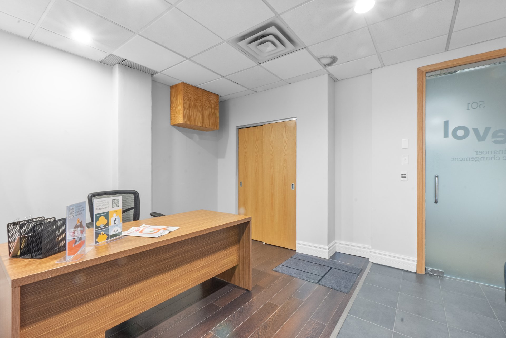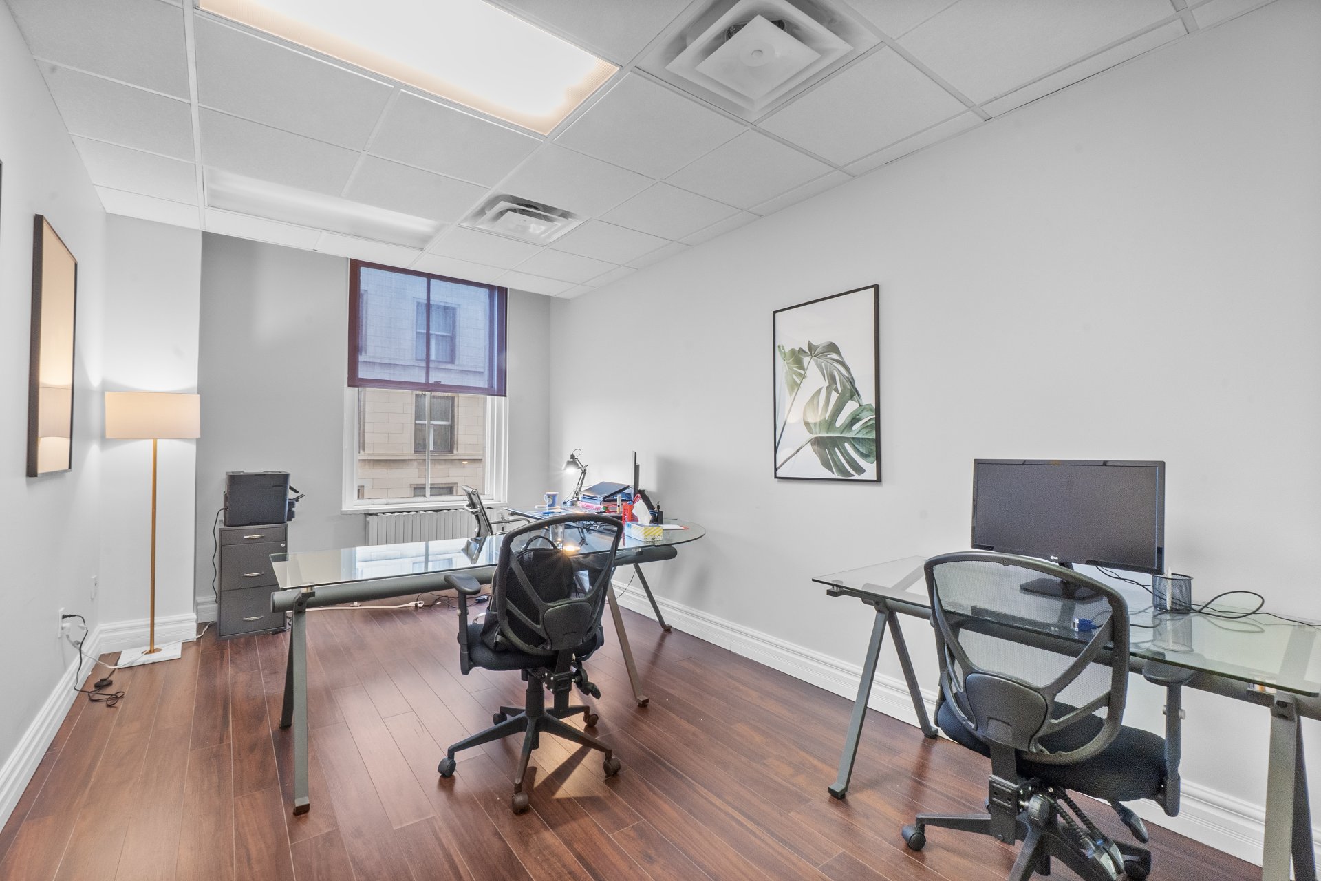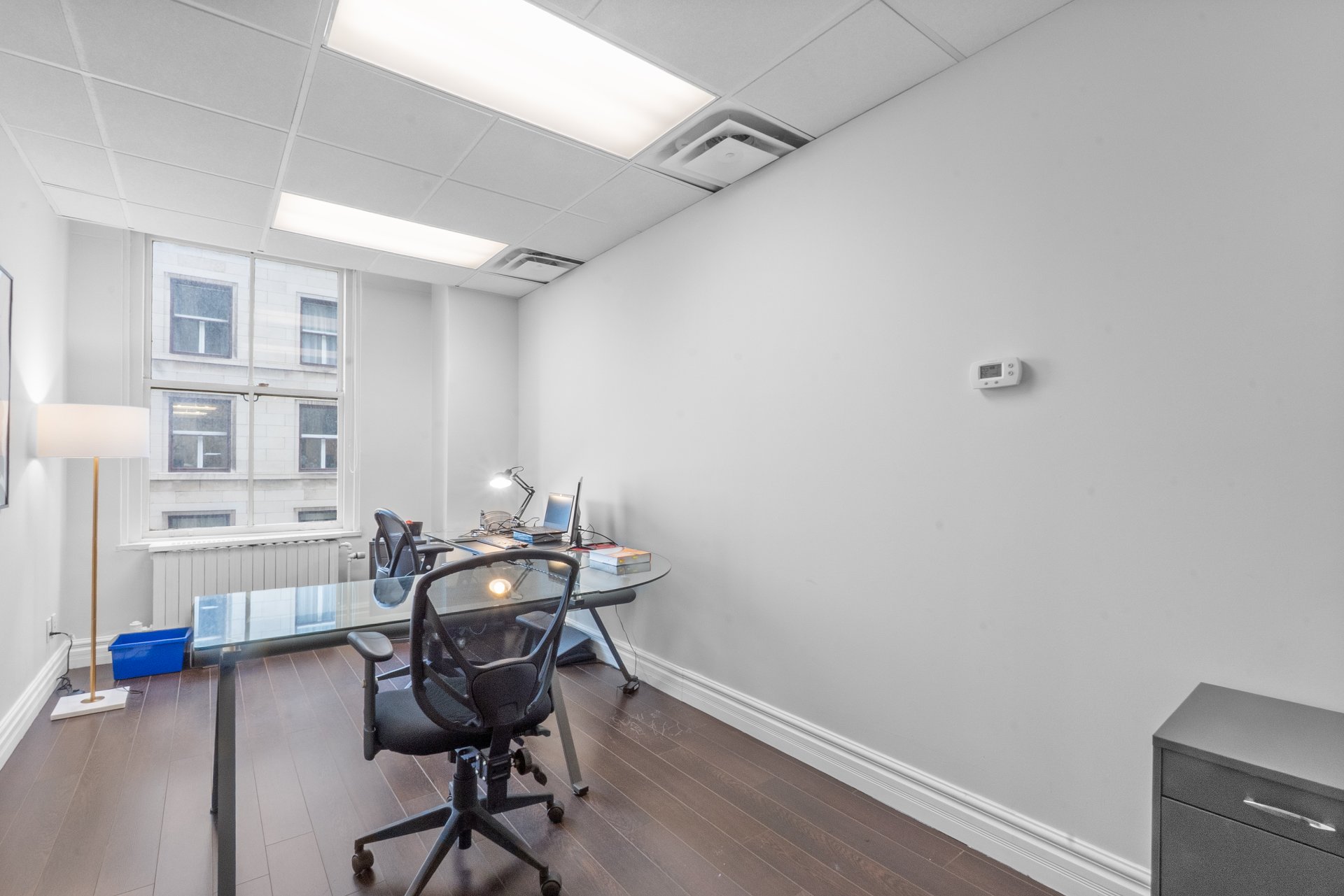 Located at 507 Place d'Armes in Old Montreal, this 2,061 sq. ft. office is steps from Place-d'Armes Metro, major bus lines, and highways, making it easily accessible for employees and clients. Surrounded by iconic landmarks, fine dining, and cultural attractions, it's perfect for business. This beautifully renovated office unit features large closed offices or meeting rooms, a kitchenette, large open area and ample storage space.