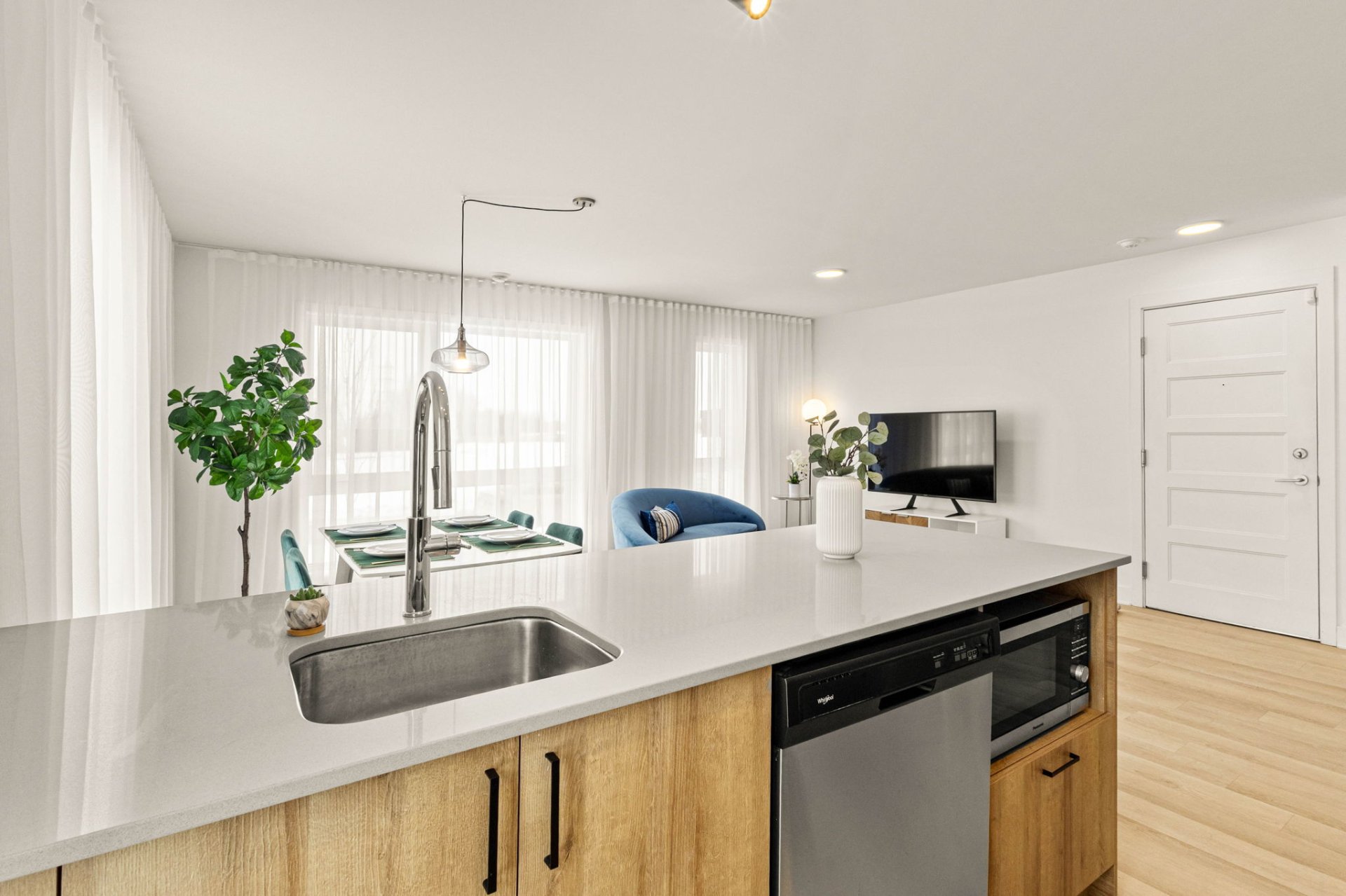 quartz countertops. Well designed interiors provide