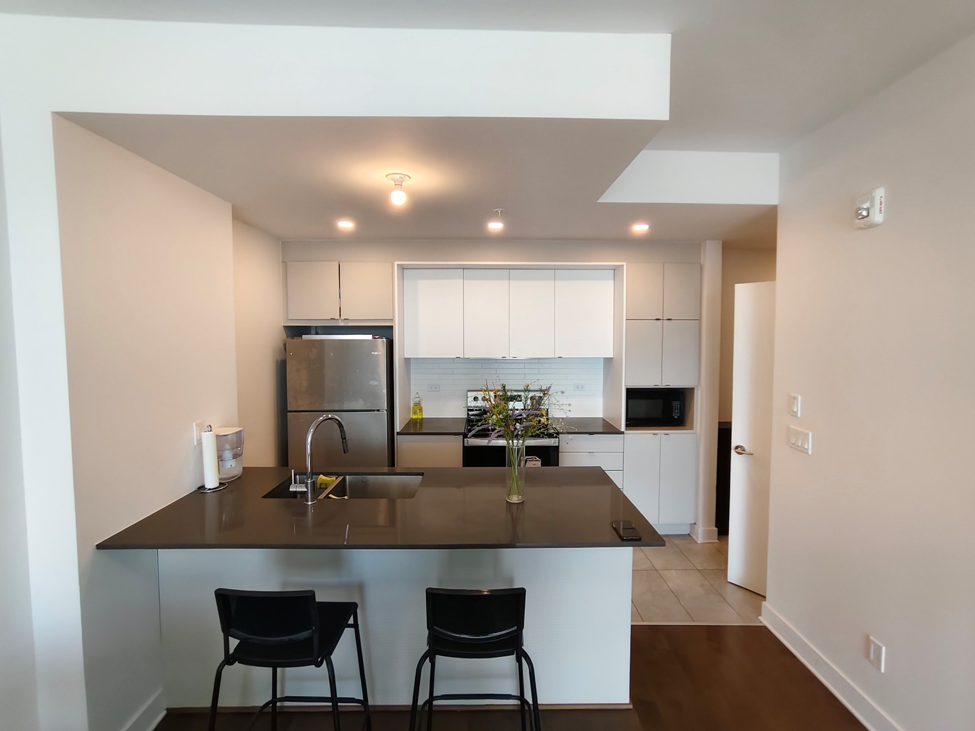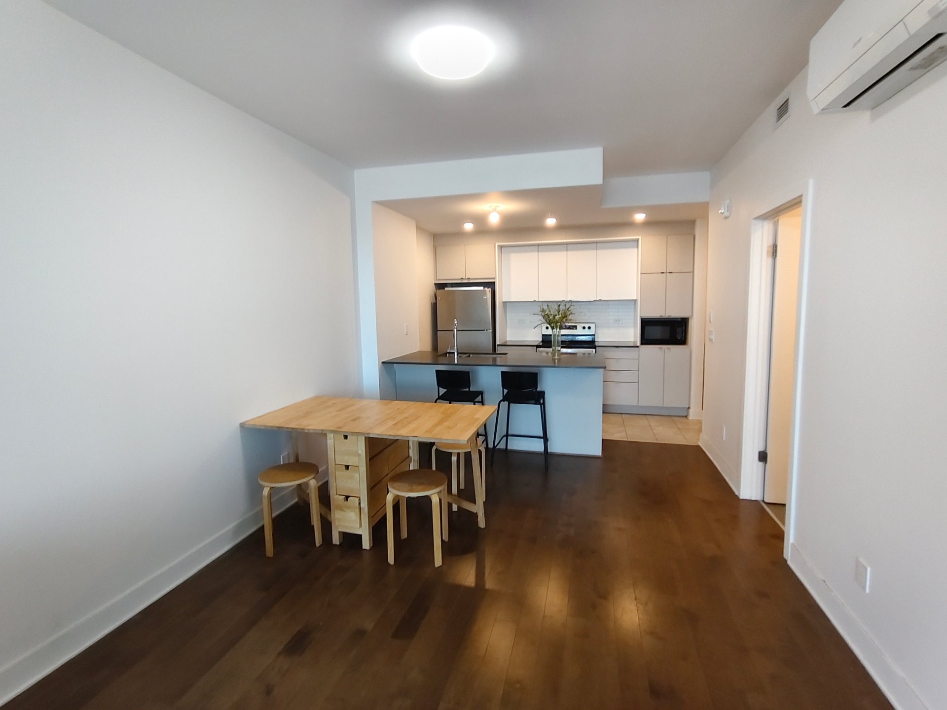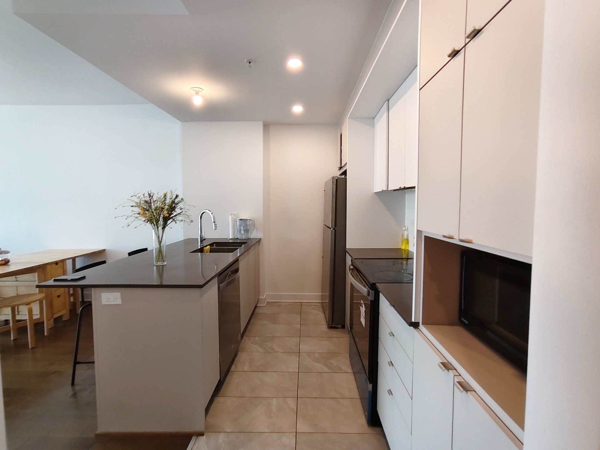 *Fully furnished*This 2021 new Condo is 6-minute walk from Namur metro station and nestles against the backdrop of the prestigious and affluent Mount Royal district. Designed and built by a reputable real estate developer, this modern, energy-efficient, and eco-friendly condominium offers a new concept and elegant living with an excellent reputation. This large one-bedroom unit boasts 700 square feet of living space and a large balcony, offering breathtaking views of the surrounding city and Mount Royal. Features include oversized picture windows, a kitchen with quartz countertops, a modern bathroom with a glass shower, and air conditioning.