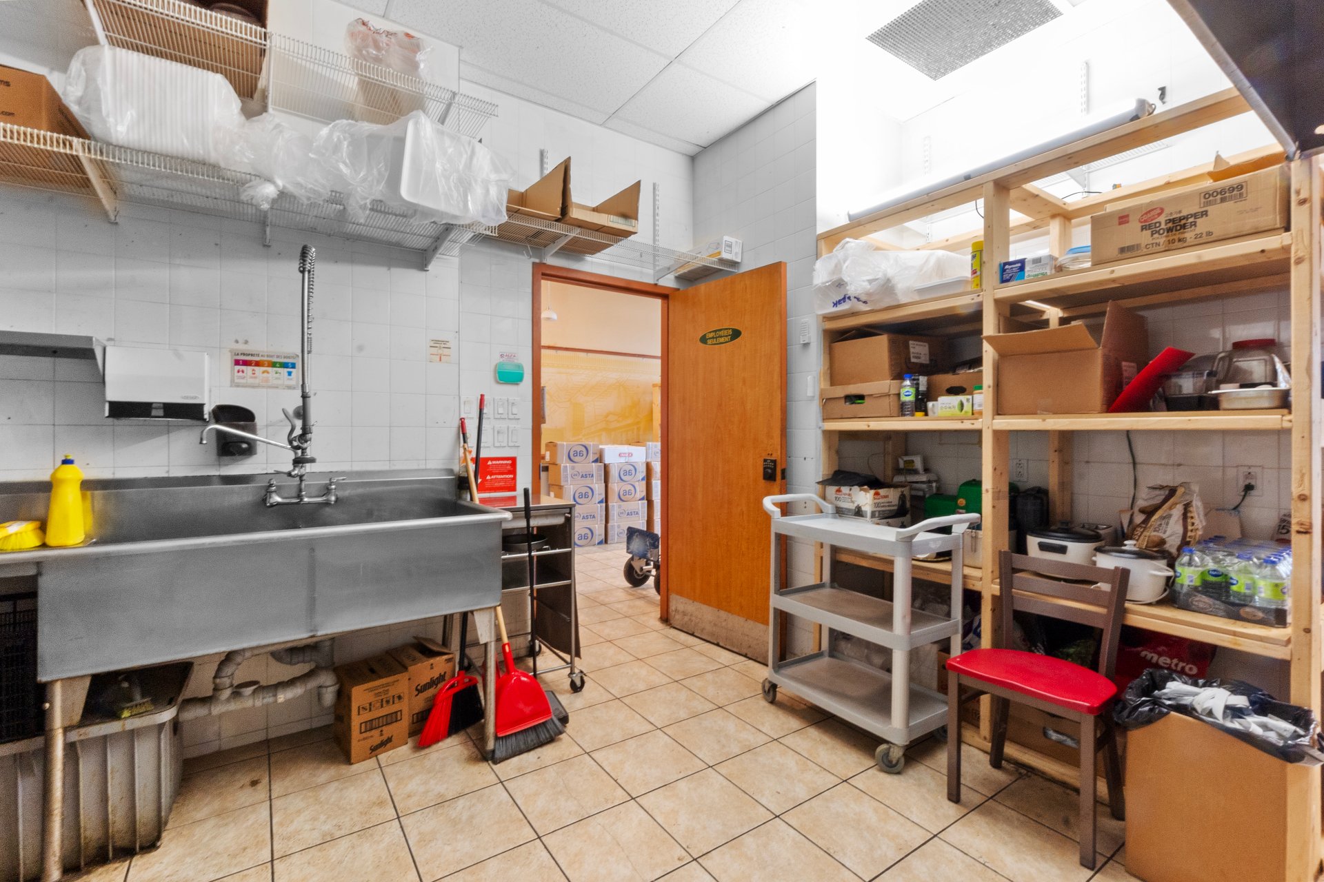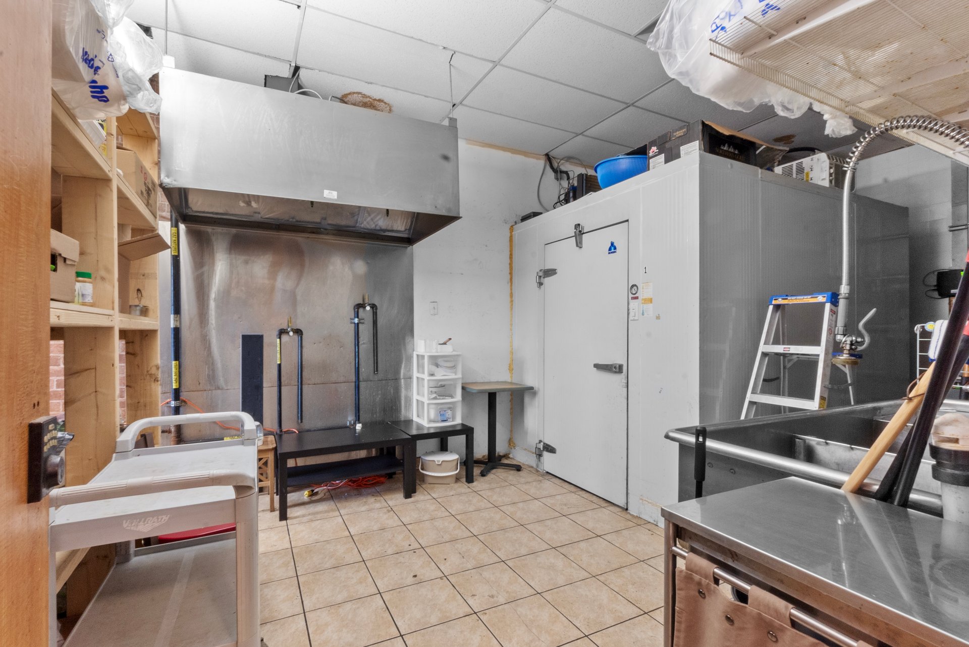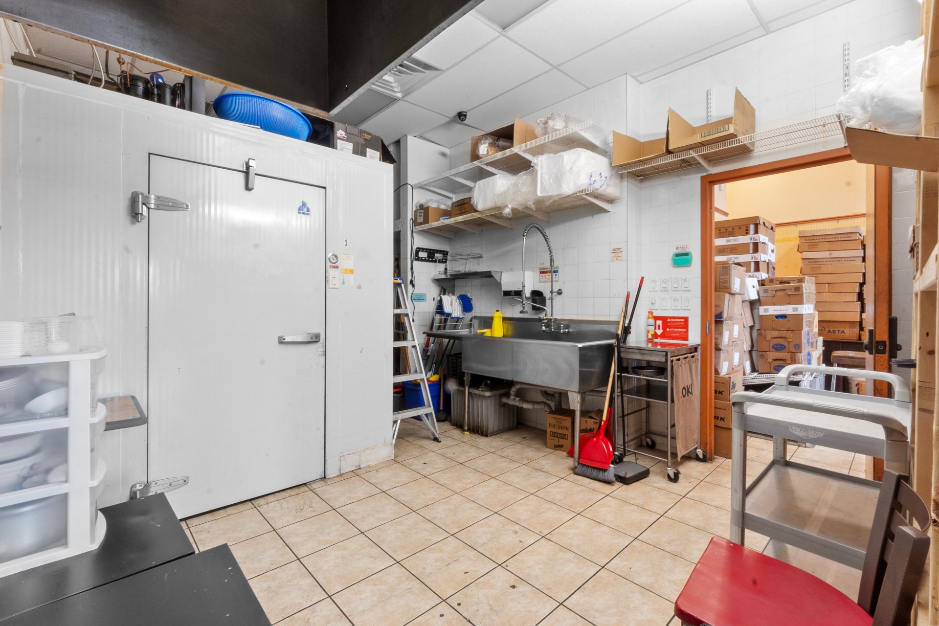 Commercial space for lease in NDG offering approximately 1,560 sq.ft. with exceptional street presence and full-height glass frontage. Bright open retail area with high ceilings, ideal for specialty food, café, boutique retail, or service concepts. Existing food-related build-out includes service counter, refrigerated display case, upright commercial refrigeration, chest freezer, walk-in cooler, stainless prep tables, commercial ventilation hood and a complete prep/wash area with commercial sinks and storage. Rear delivery access and on-site washroom. Turnkey opportunity